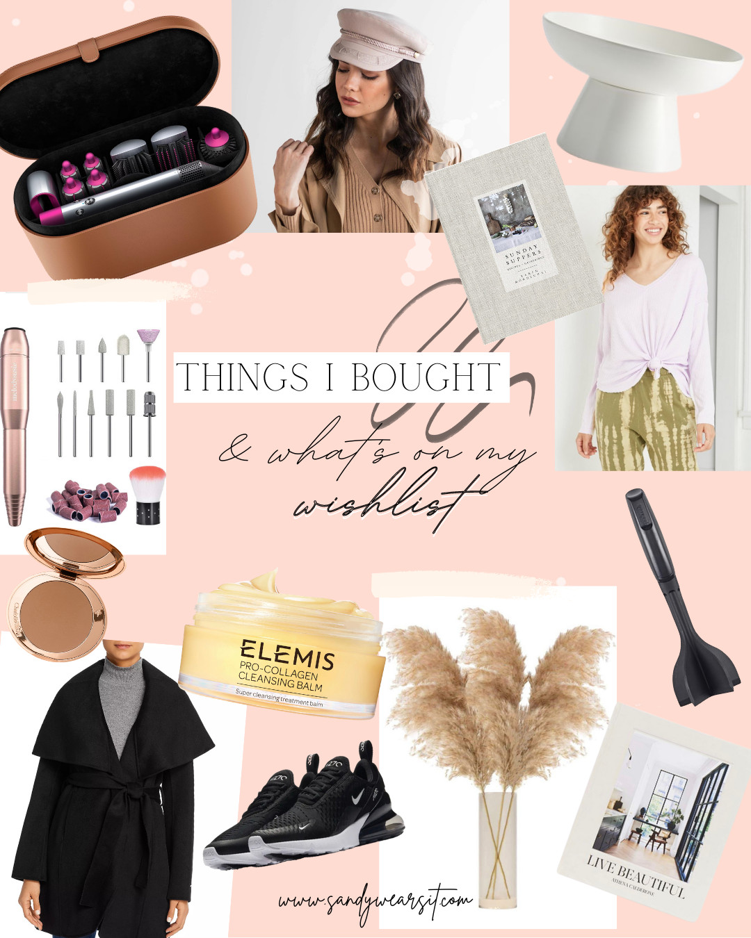 Frames TARGET | Ceramic Vase TARGET | Long Sleeve Top TARGET | Wrap Wool Coat TAHARI & HERE| Nike Sneakers NORDSTROM | Elemis Cleansing Balm ULTA | Charlotte Tilbury Bronzer NORDSTROM | Nail Buffer AMAZON | Meat Chopper AMAZON
